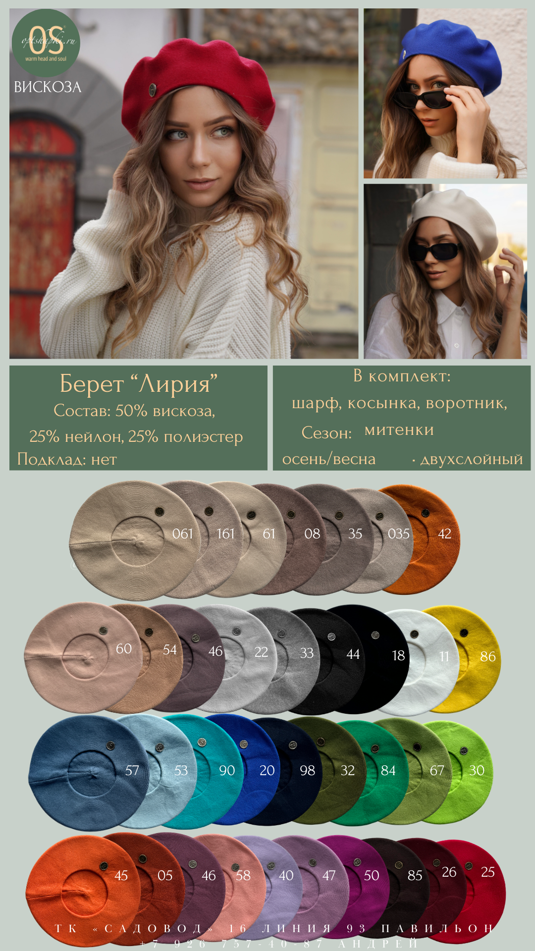 ГОЛОВНЫЕ УБОРЫ ОПТОМ, FERZ и OS ТК "САДОВОД" 16 линия 93 павильон