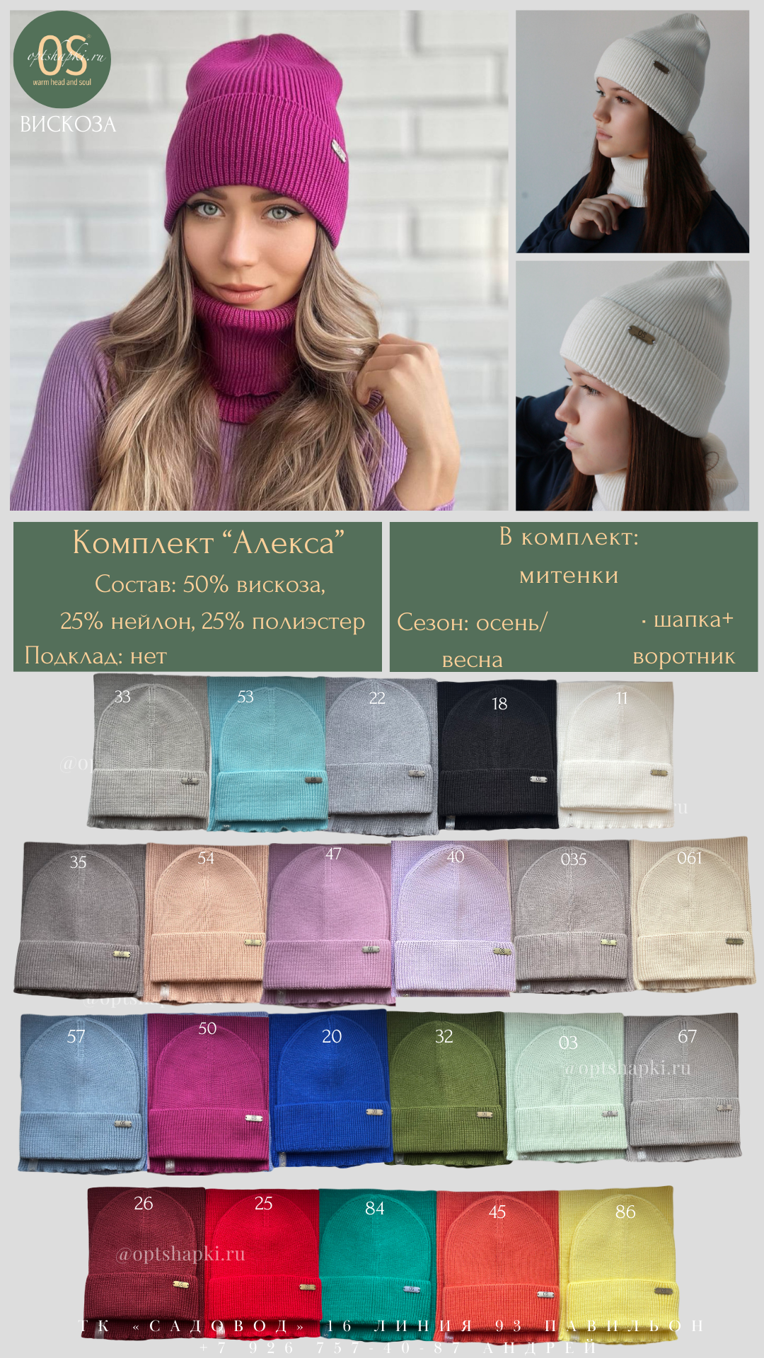 ГОЛОВНЫЕ УБОРЫ ОПТОМ, FERZ и OS ТК "САДОВОД" 16 линия 93 павильон
